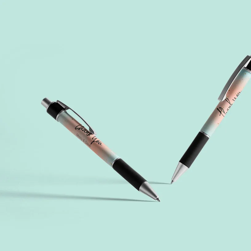 Custom printed ballpoint pens with full-colour wraparound artwork. Click-action mechanism, no setup fee, and priced to make bulk orders make sense. Easy to produce, surprisingly hard to throw away.
